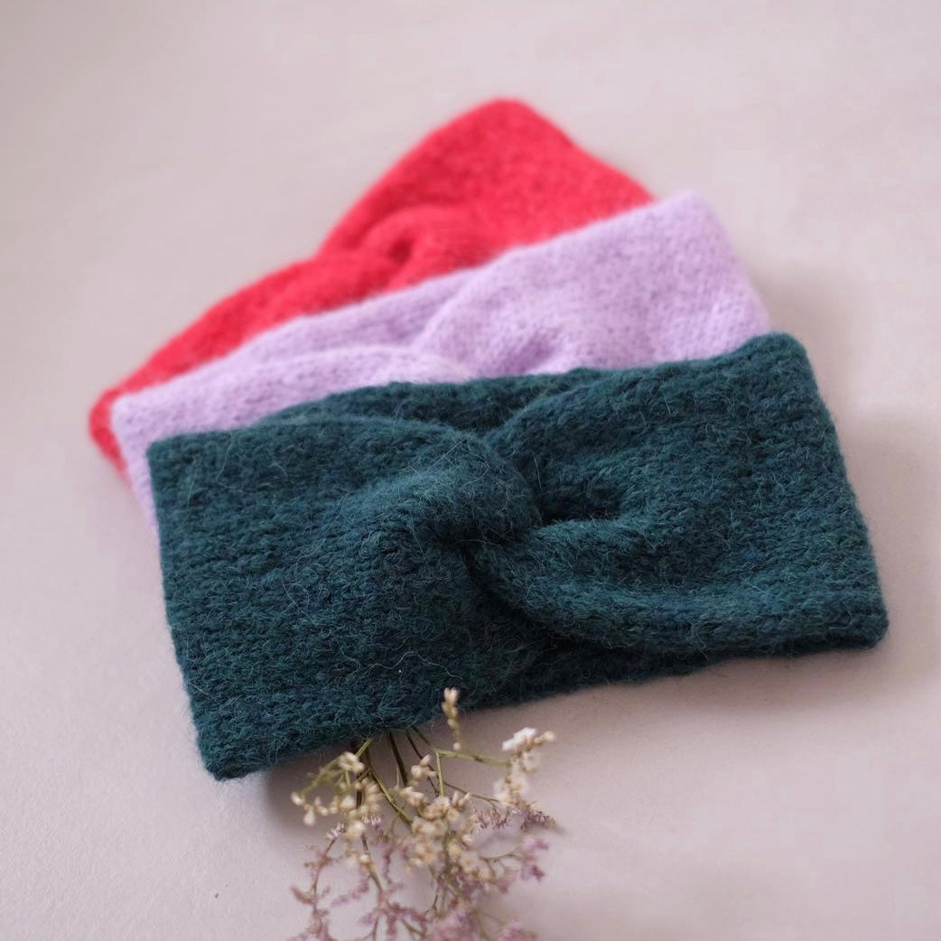 Kuschlige Stirnbänder in den Farben waldgrün, flieder und himbeere. An kühlen, windigen Herbst- und Wintertagen hält dich dieses flauschig weiche Stirnband perfekt warm. Handgestrickt in Aarau, passend für einen Kopfumfang von ca 53-58cm, bestehend aus Babyalpaka, Merinowolle und Polyamiden ist dieses Stirnband ein wunderbarer Begleiter für die kühleren Monate.