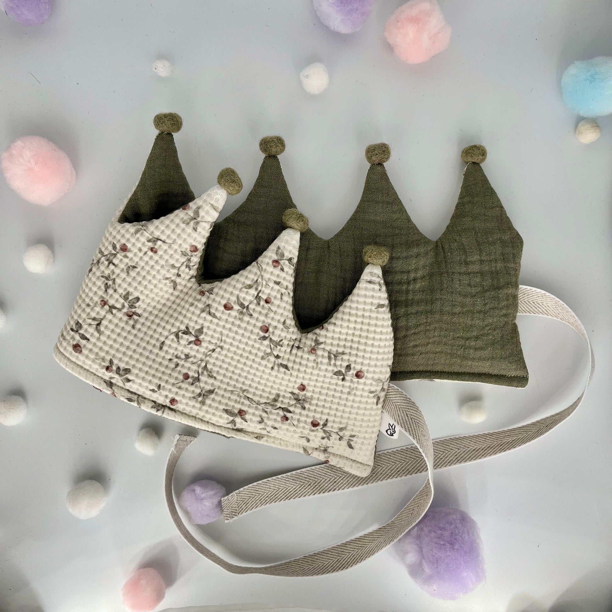 Stoffkrone | Geburtstagskrone Olivenzweig mit Musselin und Pompons *yep.lets.celebrate*